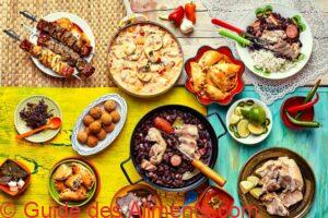 La cuisine brésilienne est une gastronomie festive, colorée et métissée, issue du croisement des traditions indigènes, africaines et portugaises. Elle varie fortement selon les régions, mais repose sur des ingrédients emblématiques comme le riz, les haricots noirs, le manioc, les fruits tropicaux et les viandes. Le plat national est la feijoada, un ragoût de haricots noirs et de viandes. On y trouve aussi des spécialités comme le moqueca, les pão de queijo, l’acarajé ou encore les brigadeiros. C’est une cuisine généreuse, chaleureuse et joyeusement ancrée dans la diversité culturelle du pays.