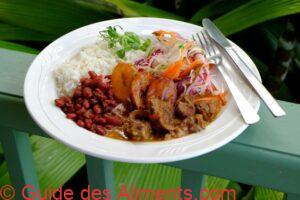 La cuisine costaricaine est simple, équilibrée et nourrissante, centrée sur des ingrédients de base comme le riz, les haricots noirs, les bananes plantains, le maïs, les légumes et les viandes (poulet, bœuf, porc). Le plat emblématique est le gallo pinto, mélange de riz et haricots, souvent servi au petit déjeuner. C’est une cuisine familiale, peu épicée, qui valorise les produits frais et locaux, reflet du mode de vie paisible et rural du Costa Rica.