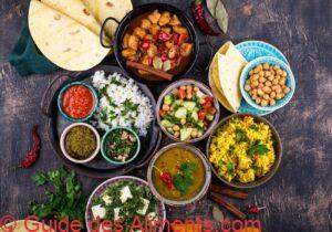 La cuisine indienne est une gastronomie vaste, colorée et intensément parfumée, réputée pour son usage riche en épices, herbes et légumineuses. Elle varie selon les régions, mais repose sur des aliments comme le riz, le blé, les lentilles, les laits fermentés, les légumes et les viandes (sauf bœuf chez les hindous). Parmi les plats emblématiques figurent le curry, le biryani, le dal, les samosas et les naan. C’est une cuisine profondément culturelle, végétarienne ou non, marquée par la diversité et la spiritualité.
