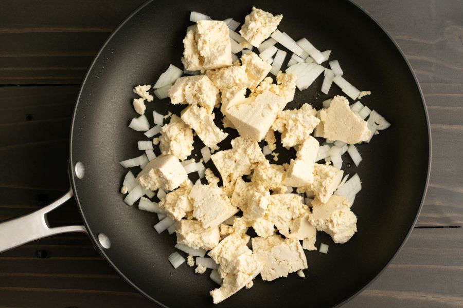 Ajouter tofu, paprika, cumin, chili, chipotle, concentré. Mélanger 2 min.