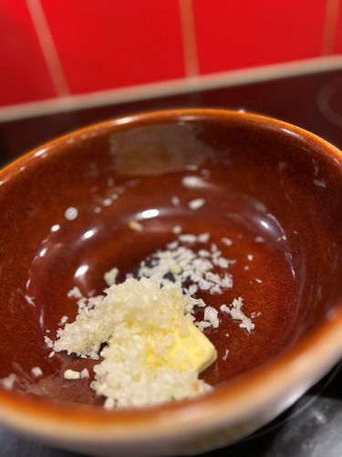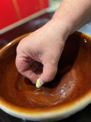 - Coupez la gousse d'ail en deux et frottez l'intérieur du caquelon avec les moitiés d'ail.