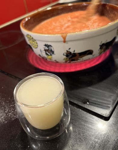 - Délayez la fécule de maïs dans un verre avec le reste du vin blanc et le kirsch.