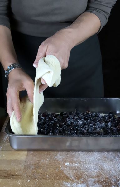 Étaler la seconde part de pâte en disque fin et la poser sur les raisins.