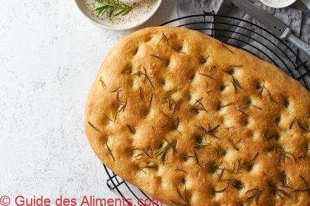 Focaccia : Un pain plat moelleux et huileux souvent assaisonné d’herbes et de sel.