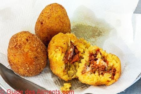 Arancini : Des boules de riz farcies avec de la viande, du fromage ou des légumes, puis panées et frites.