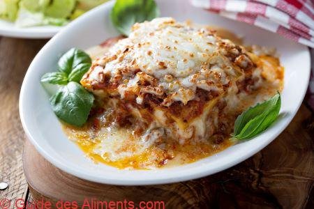 Lasagnes : Des couches de pâtes, de sauce à la viande, de béchamel et de fromage ricotta, le tout cuit au four jusqu’à obtenir une délicieuse texture gratinée.
