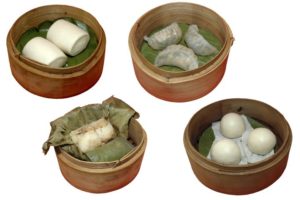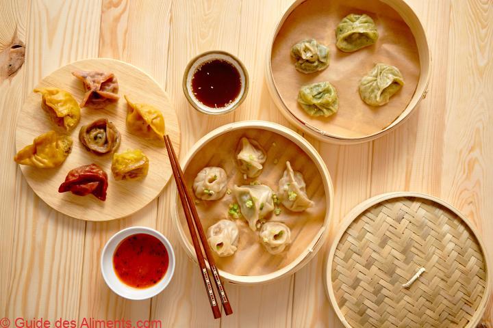 • les jiaozi à la vapeur : il s’agit de genre de raviolis dont la pâte est faite essentiellement de farine de blé. Le tout est farci à la viande de porc, aux crevettes ou autre. On cuit les jiaozi à la vapeur ou dans l’eau bouillante ;