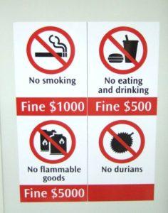 « … On peut le sentir loin à la ronde. Malgré sa grande popularité locale, le fruit est interdit dans certains établissements comme les hôtels, les métros et les aéroports (y compris les bagages à main et autres valises, accompagnés ou non), ainsi que les transports publics du sud-est asiatique. »