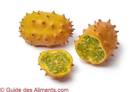 Le fruit de ce concombre est de couleur orange. La peau est parsemée d’épines. Il mesure environ dix centimètres. L’intérieur du fruit est vert et contient de nombreuses graines, sa pulpe est légèrement gluante. Le jus a un goût de banane et de kiwi, voire de concombre.