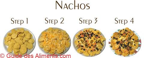 Les nachos sont un plat culinaire dont la matière de base est une farine de maïs qui a subi le processus de nixtamalisation. Associés à la cuisine tex-mex, ils peuvent être consommés soit rapidement comme collation ou bien avec différents accompagnements afin d’en faire un repas complet. Dans leur forme la plus simple, les nachos sont des chips tortillas ou des totopos recouverts de fromage et d’une sauce salsa. Ils peuvent également être mangés avec du chile con queso. Créés en 1943 par Ignacio « Nacho » Anaya, les nachos originaux sont composés de tortillas de maïs frites recouvertes de cheddar fondu et de lamelles de piments Jalapeño.