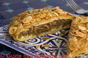 La recette marocaine classique, originaire de Fès, est la pastilla au pigeon et aux amandes. Elle est servie le plus souvent lors de réceptions.