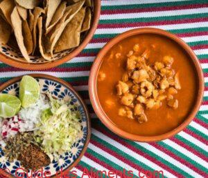 - Bouillon : Le bouillon est préparé en cuisant les grains de maïs hominy avec de la viande, des épices, des oignons et de l’ail. Le bouillon est assaisonné avec des herbes et des épices pour lui donner une saveur robuste.