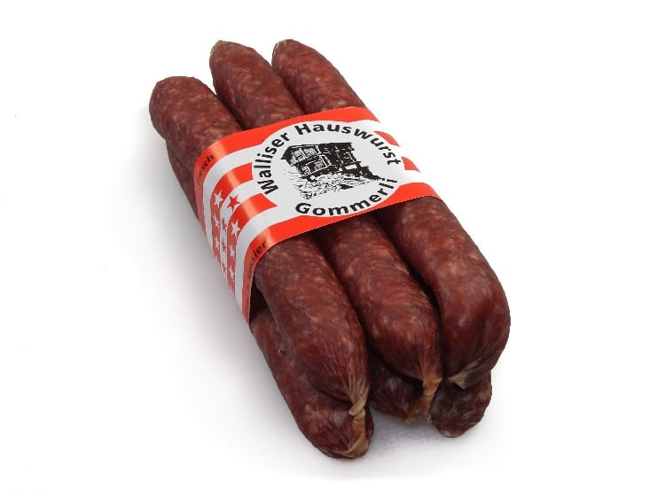 L’importance symbolique de la chasse est telle en Valais, aujourd’hui encore, que l’on trouve aussi fréquemment des saucisses à base de gibier (chamois principalement). Toutefois, les fabricants professionnels ne peuvent se contenter de l’approvisionnement local et doivent importer des pièces de gibier de l’étranger.